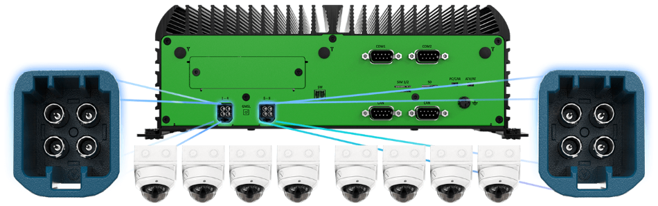 - 8x Mini-Fakra connectors for GMSL Cameras