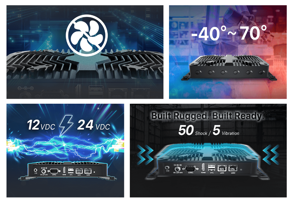 - Fanless & Ruggedized Design